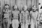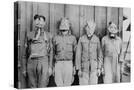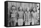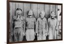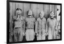 English, German, French and American Don their Gas Mask Styles in World War I Lineup Wall Art Print