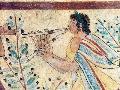 Etruscan art: a flute player. Detail of a fresco at the Tomb of the Leopards Giclee Wall Art