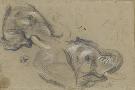 Etude de deux têtes d'éléphants tournées vers la droite, et étude d'oeil