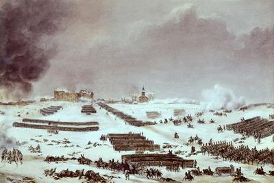 Europe, 19th century. Napoleonic Wars (1807). Battle of Eylau, a battle between Napoleon's Grande Armee and a Russian Empire army under Levin August, Count von Bennigsen near the town of Preußisch Eylau in East Prussia. Watercolour. - © BeBa/Iberfoto/Everett Collection (348938)**US SALES ONLY**