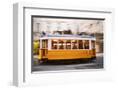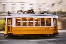 Europe, Portugal, Lisbon, a Speeding Tram (Streetcar) in the City Center