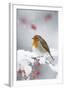 European Robin in Snow, Close-Up Showing Puffed Photo Print
