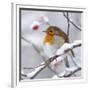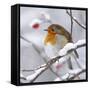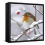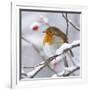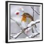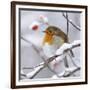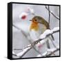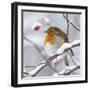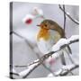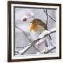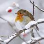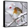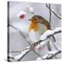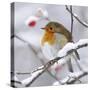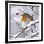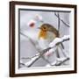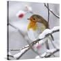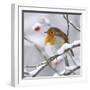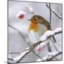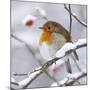 European Robin in Winter with Snow Photo Print