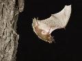 Evening Bat Flying at Night from Nest Hole in Tree, Rio Grande Valley, Texas, USA