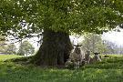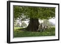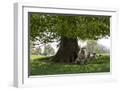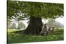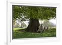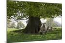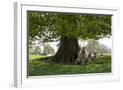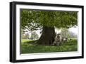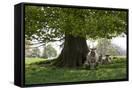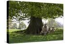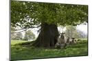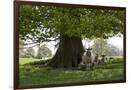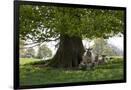 Ewes and Lambs under Shade of Oak Tree, Chipping Campden, Cotswolds, Gloucestershire, England