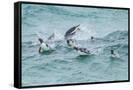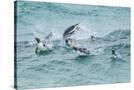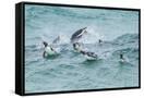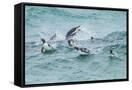 Falkland Islands, Sea Lion Island. Gentoo penguins porpoising in surf.