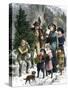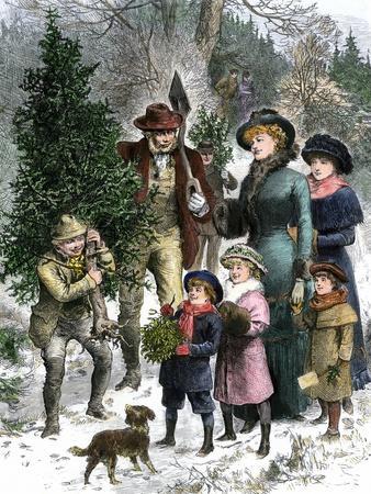 Family Bringing Home their Christmas Tree and Mistletoe, 1880s