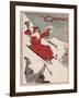 Father Christmas Ringing a Bell as He Sleighs Down a Hill