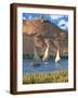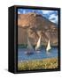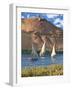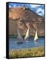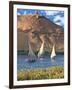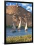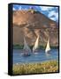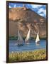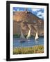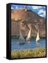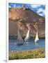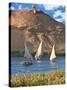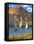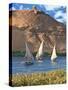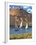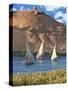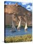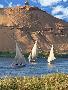 Felucca Sailboats, Temple Ruins and the Large Sand Dunes of the Sahara Desert, Aswan, Egypt