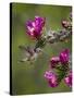 Female Broad-Tailed Hummingbird (Selasphorus Platycercus) Feeding at a Walkingstick (Cane) Cholla Canvas Wall Art