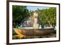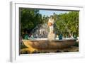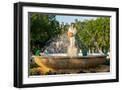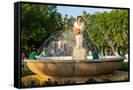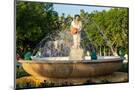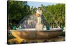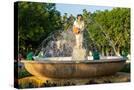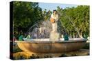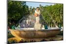Female Mayan figure woman holding water jug in fountain, Francisco Canton Rosado Park, Vallodolid