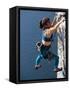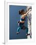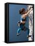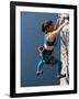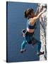 Female Rock Climber Reaching for a Grip, New Paltz, New York, USA