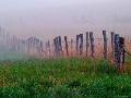 Fence Across Foggy Meadow, Cades Cove, Great Smoky Mountains National Park, Tennessee, USA