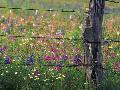 Fence Post and Wildflowers, Lytle, Texas, USA