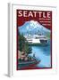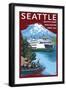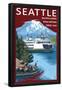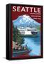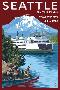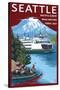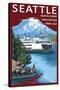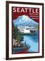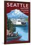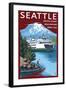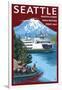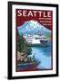 Ferry & Mount Rainier Scene - Seattle, Washington Wall Art Print