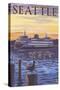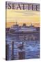 Ferry Sunset and Gull - Seattle, WA Wall Art Print