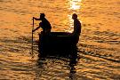Fisherman Landing the Night Catch. Vietnam, Indochina