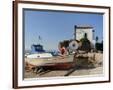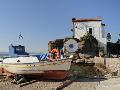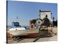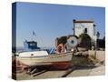 Fishing Boat Stella on Ramp Near Small Chapel at Skala Sikaminia, Lesbos (Lesvos), Greece