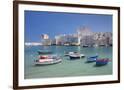 Fishing boats at the harbour, old town with cathedral, Giovinazzo, Bari district, Puglia, Italy, Me