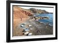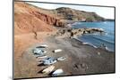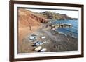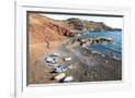 Fishing boats black sand beach, El Golfo, Lanzarote, Canary Islands, Spain, Atlantic