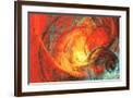 Flaming Sun. Abstract Painting Texture in Summer Color. Modern Futuristic Red Pattern. Bright Color Wall Art Print