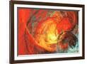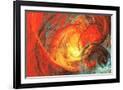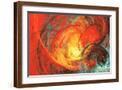 Flaming Sun. Abstract Painting Texture in Summer Color. Modern Futuristic Red Pattern. Bright Color Wall Art Print