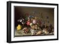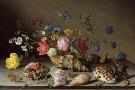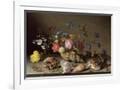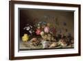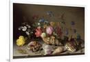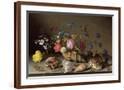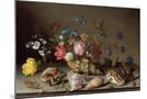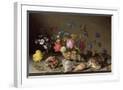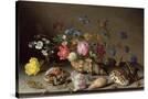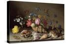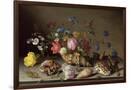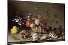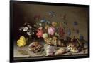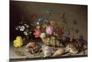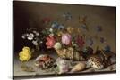 Flowers, Shells and Insects on a Stone Ledge Giclee Wall Art