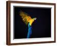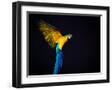 Flying Ara On A Dark Background Photo Print