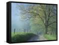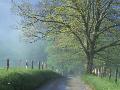 Foggy Road and Oak, Cades Cove, Great Smoky Mountains National Park, Tennessee, USA