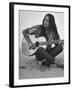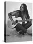 Folk Singer Joan Baez Strumming Her Guitar on the Beach Near Her Home