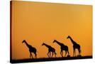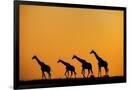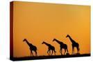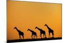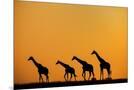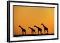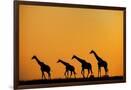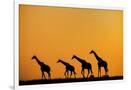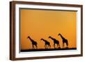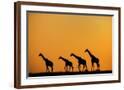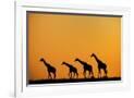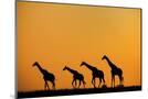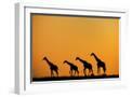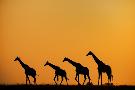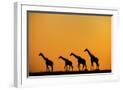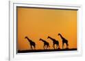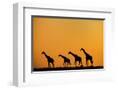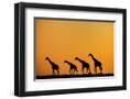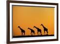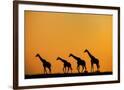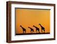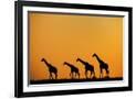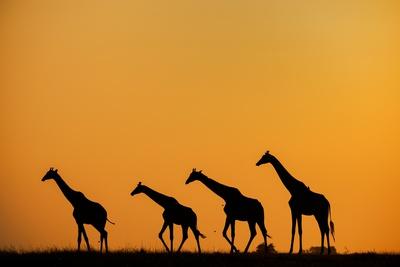 Four Giraffes walking in a line, silhouetted at sunset, Chobe National Park, Botswana