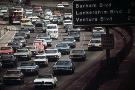 Four Lanes of Traffic on the Hollywood Freeway in Los Angeles in 1970s