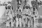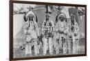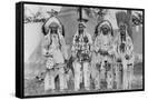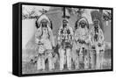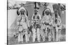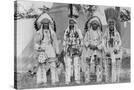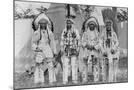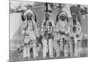 Four Native American Chiefs in Traditional Clothing and Feathered Bonnet Wall Art Print