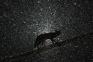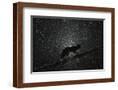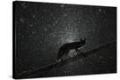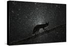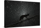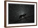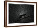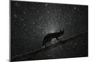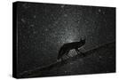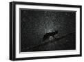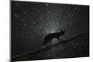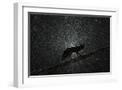 Fox walking on tree trunk in heavy snowstorm, Hungary Photo Print