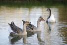 France, Burgundy, Nievre, Cercy La Tour. Geese on the Canal