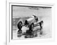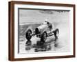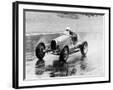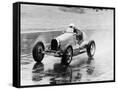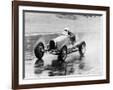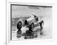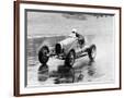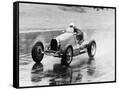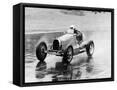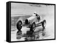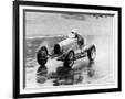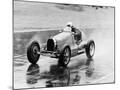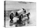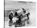 Frank Wall driving a Bugatti Type B Driving on a wet racetrack with spray coming off the back wheels