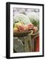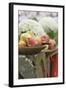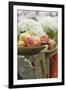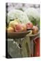 Fresh Apples, One Partly Peeled, on a Fence Photo Print