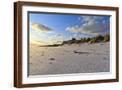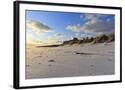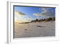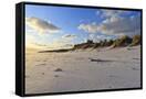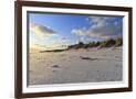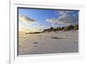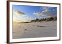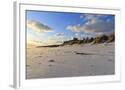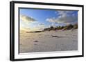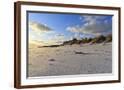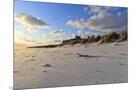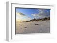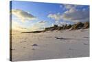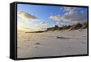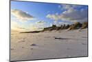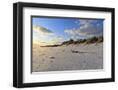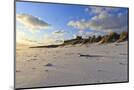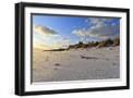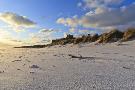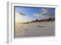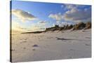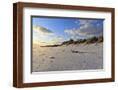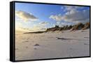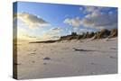 Fresh Spring Snow at Dawn Highlight Ripples and Marks in the Sand Beneath Bamburgh Castle