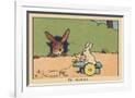 From the Entrance of His Burrow a Rabbit Observes a Rabbit Playing a Musical Toy with Wheels.” A St Giclee Wall Art