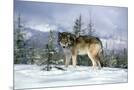 GRAY WOLF Canis lupus IN WINTER SNOW LOOKING AT CAMERA Photo Print