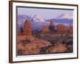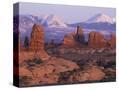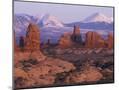 Garden of Eden with La Sal Mountains near Dusk, Arches National Park, Utah, USA