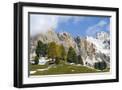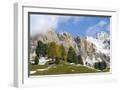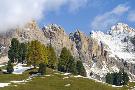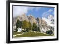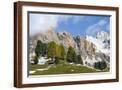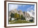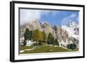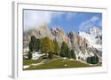 Geisler mountain range in the dolomites of the Groden Valley or Val Gardena in South Tyrol