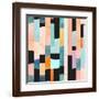 Geometric Seamless Pattern with Multicolor Stripes and Teals Wall Art Print