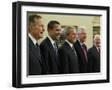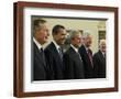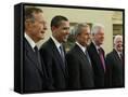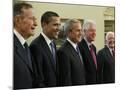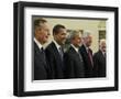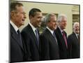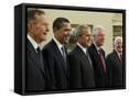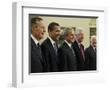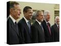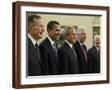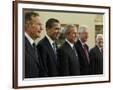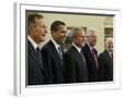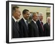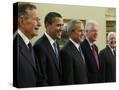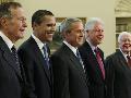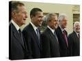 George W. Bush with Barack Obama and Former Presidents Bush, Clinton and Carter in Oval Office