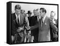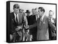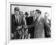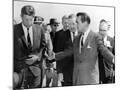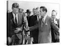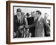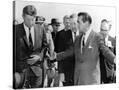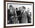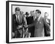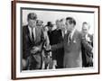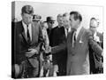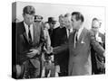 George Wallace Stepping Aside as Pres John Kennedy Walks to Platform at Muscle Shoals, Alabama