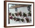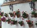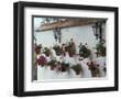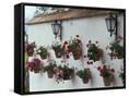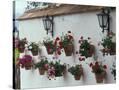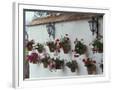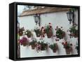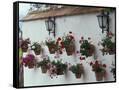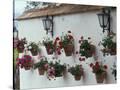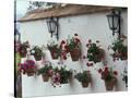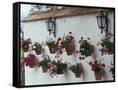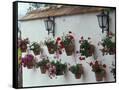Geraniums along White Wall of Palacio de Mondragon, Ronda, Spain