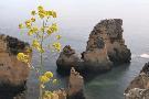 Giant Fennel (Ferrula Communis) Flowering on Clifftop with Sandstone Seastacks in the Background