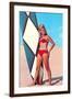 Gidget with Long Board, Retro Wall Art Print
