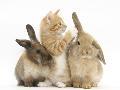 Ginger Kitten, 7 Weeks, Playing with Ear of Young Lionhead-Lop Rabbits