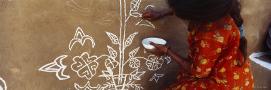 Girl Painting on a Wall, Thar Desert, Jaisalmer, Rajasthan, India